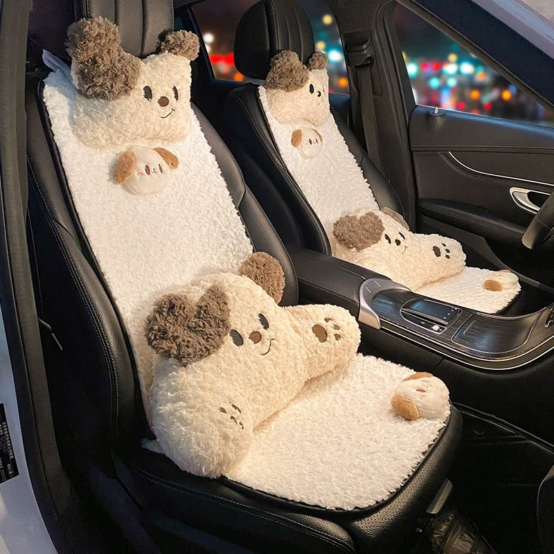 Cute Dog & Bear, Car Neck & Back Pillows with Cooling Seat Cushions