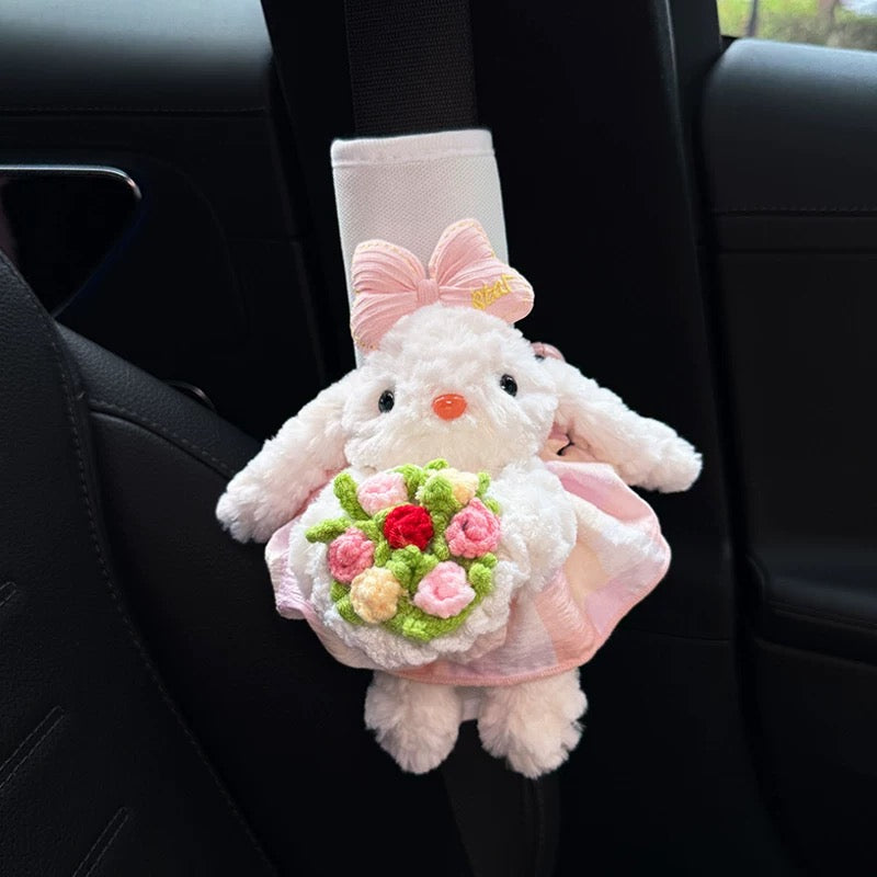 Make your car rides more adorable with our Cute Rabbit with Bouquet Seat Belt Strap Cover. This soft and cuddly rabbit doll holding a beautiful bouquet adds a touch of charm to your car's interior. Not only will it make your seat belt more comfortable, but it will also bring a smile to your face every time you get in your car.