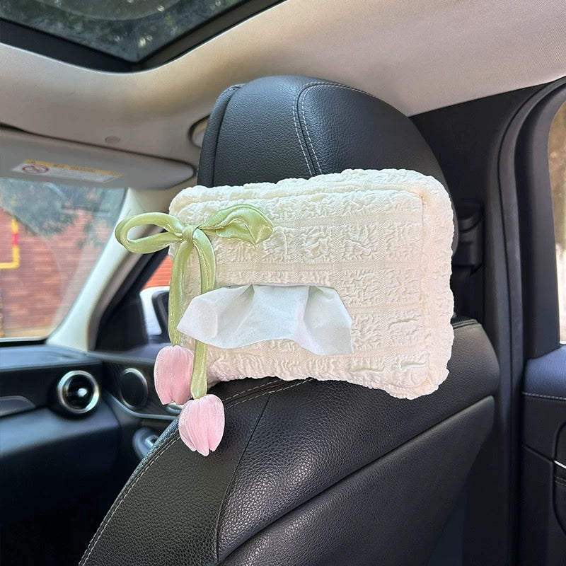 Cute White and Pink Tulip Flowers, Car Tissue Holder